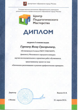 2015, January – All-Russian programming tournament «Algorithm», winner, 125 points, 1st place in the country.